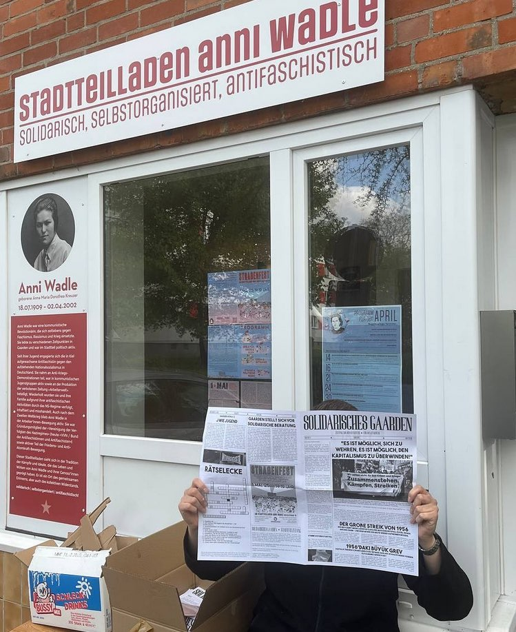 Aus dieser Suchbewegung sind vermehrt Stadtteilgruppen entstanden, die anknüpfend an lokale Lebensbedingungen versuchen, Profitorientierung, Konkurrenz und Vereinzelung eine solidarische und bedürfnisorientierte Praxis entgegenzusetzen. In der aktiven Hinwendung zu den Nachbar:innen unterscheiden sie sich von klassischen Infoläden und linken Szenetreffs, durch den revolutionären Anspruch besteht gleichzeitig eine klare Abgrenzung zu Sozialarbeit und reformistischen Ansätzen. Auch der Stadtteilladen Anni Wadle aus Kiel verortet sich innerhalb dieser Überlegungen und entwickelt seit gut drei Jahren eine entsprechende Praxis im Stadtteil Gaarden.